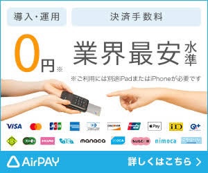AIR PAYとは、モバイル決済サービスの一つで、iPhoneまたはiPadと専用カードリーダー一台で様々な決済手段に対応できるサービスです。
